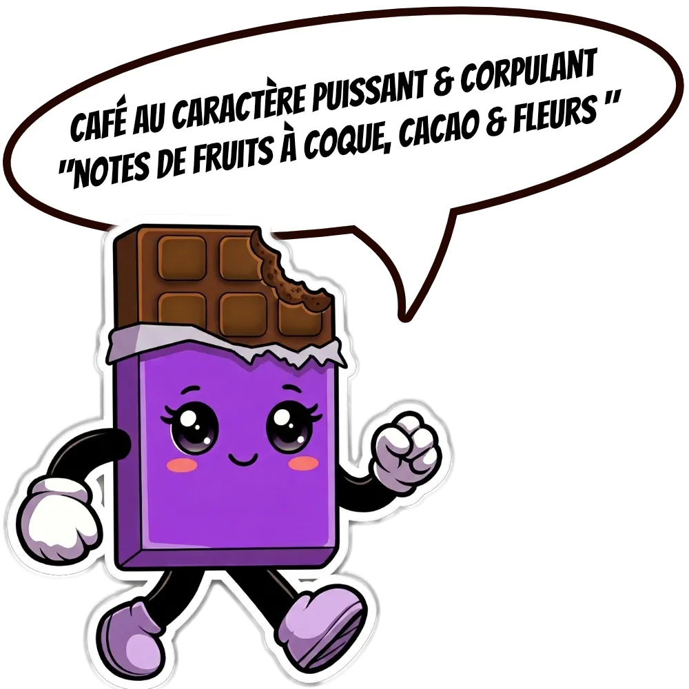 « Un café au caractère puissant et corpulent aux notes de fruits à coque, cacao & fleurs »